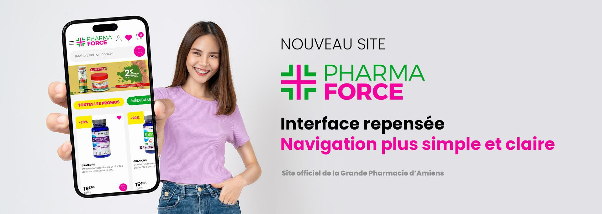 Chaque mois, nous vous proposons des réductions exclusives sur un grand panel de produits faisant de Pharmaforce.fr la pharmacie en ligne la moins chère sur une nouvelle sélection tous les mois. Toute l’année, nous veillons à vous offrir des prix compétitifs sur l’ensemble de nos produits. De plus afin de fournir des conseils de qualité équivalents à ceux d'une pharmacie physique, la Grande Pharmacie d'Amiens vous propose chaque mois des newsletters conseils rédigés par ses pharmaciens. Ces ressources couvrent divers domaines tels que la beauté, le bien-être, la forme, la phytothérapie, l'aromathérapie et l'homéopathie.